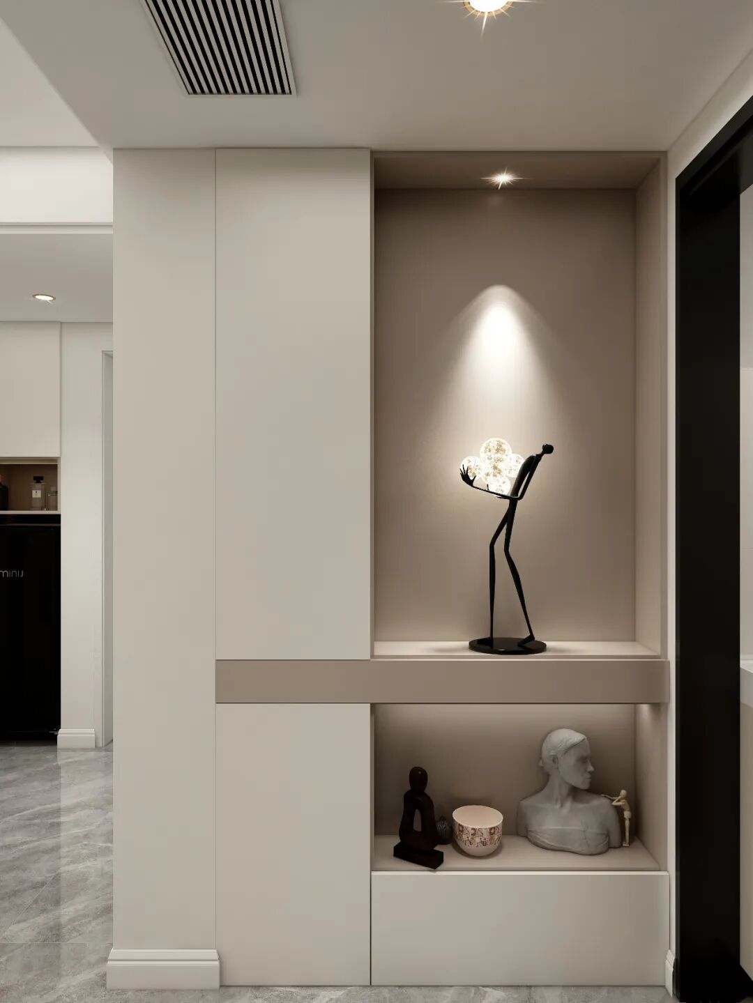 今天给大家分享一套两室一厅现代简约装修。全房舒适又迷人,忍不住晒晒,希望大家喜欢。准备装修和正在装修的朋友,记得收藏备用,可以作为一个参考案例哦! 全房利用白色、浅木色为基础的色彩搭配,餐厅+收纳柜,客厅不做电视墙,定制收纳储物柜,极大的满足了室内储物空间,收纳很强大。 翌嘉设计师 徐珮珮 从业:7年 擅长风格:现代简约、北欧风、混搭风等 设计理念:设计是一种感受一种心态一种舒适的开心的生活方式。 主要作品:恒城花苑、双花公寓、兰馨雅苑、蒋家桥小区、巴林小区、凉城四村 ENTRANCE 玄关 入户右手边就是玄关。做了顶天立地的玄关柜,除了方便打扫还颜值满分。 左半边做了隐藏鞋柜,右半部分做了镂空,内部增加光源方便日常使用。随意放了一些现代艺术感的摆件,增加空间文艺气息。 LIVINGROOM 客厅 电视背景墙、隐藏白色柜体巧妙连接,利用色调上的不同进行区域划分,呈现出丰富的视觉层次感,装饰性与实用性兼得。 米灰色的墙面,契合摩登时尚的装饰画,打造出整个空间的现代时尚感。方方正正的浅灰调沙发、圆润的白色茶几桌,用几何图形凸显了的精致玲珑。 DININGROOM 餐厅 餐厅和卧室之间增加了镂空屏风,营造一种客厅和餐厅的暧昧空间。通顶的吊柜设计,纯白色柜体可清爽地隐藏家中各式物品。 除了储物,还有展示的一些小物品。利用一下小角落布置,丰满精致细节,一点空间也不浪费! BEDROOM 主卧 通顶的衣柜,通白的设计,毫不意外的衔接了天花板。拼色的柜体部分镂空,提升空间质感与精致度。 飘窗上增加上软垫和抱枕,以柔软触感给人甜蜜和温和的感觉。 浅木色搭配浅灰调地毯,所有的灯具以简约设计的形式展现。整个睡眠空间的柔软由奶白绒料及淡雅的浅灰床品组成。 BEDROOM 次卧 与书桌一体化组合式的上床设计,这种设计节省了空间,能更合理的利用房间的宽度,满足孩子的学习需求且阳光充足。 白色可以避免太多柜子带来的压抑感,也能满足一定的收纳需求。整个房间尽显静谧之余,又不失优雅与灵动性。 BATHROOM 卫生间 三分式隐藏镜柜设计,满足需求;悬空洗漱台,方便打扫;洗漱干湿分离;毛巾置架,细节真的是一个都少不了! 典雅白与高级灰组合时,将自己的美妙发挥到极致,于细节之处彰显格调与品味。