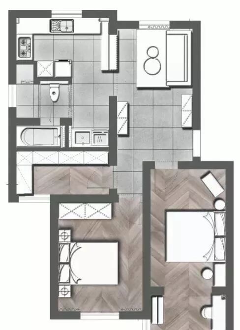 今天分享的是一套建筑面积84平米的北欧风小户型二居室案例,设计师选择了舍弃传统的餐厅,把客厅和厨房做半连通的设计,让卧室空间能够更宽敞一些,还留出了空间来布置一个衣帽间和书房,整体的设计也非常好看。
